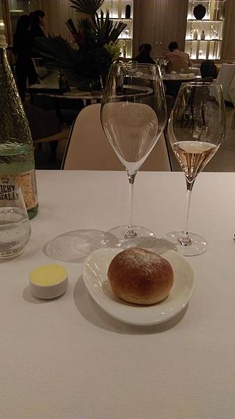 外酥裡嫩的麵包搭著鹹奶油,佐以俏皮又不失端莊的粉紅氣泡酒(聽說是安潔莉娜裘莉的酒莊所出品),現場彷彿響起簡單而輕快的序曲。