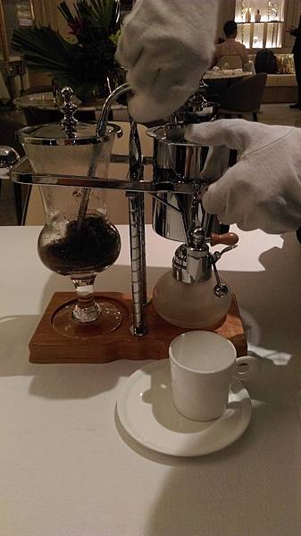 店長的巧思還包含這台精巧而精密的虹吸式咖啡壺,隨著酒精燈的火焰引導兩邊的平衡,咖啡在壺具工藝之間的旅行,一轉眼就化身成為潔淨白瓷杯裡洋溢的極品咖啡果香。